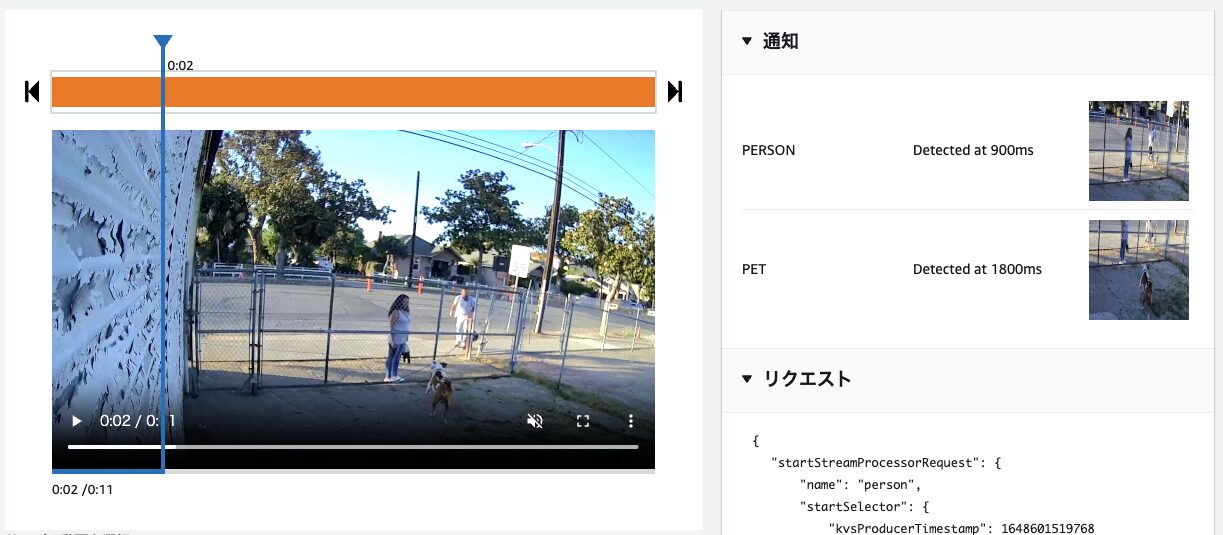 動画分析では、ラベルを検出した時間とともに通知欄に表示されました。