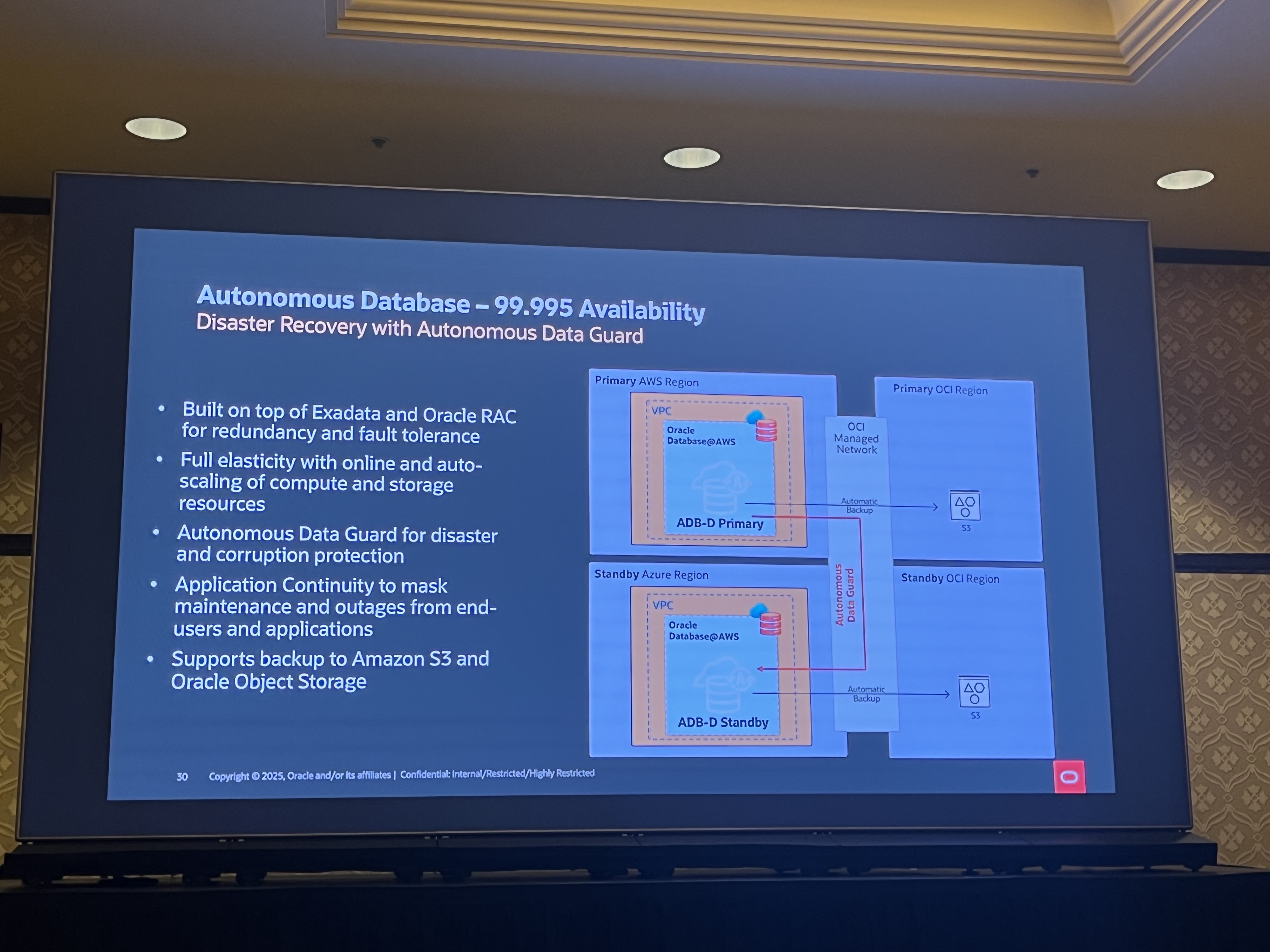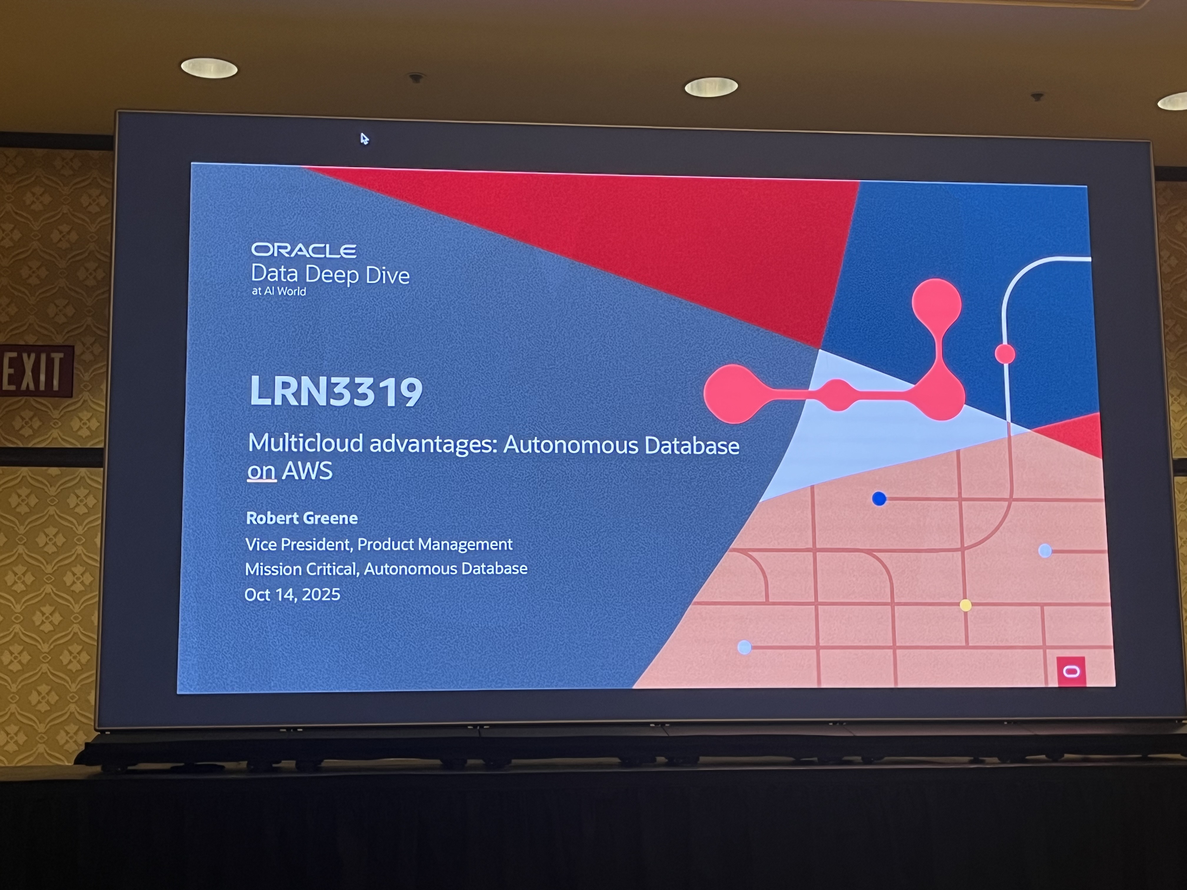 今回は後追いでのレポートとして「Multicloud: Advantages of Autonomous AI Database Deployed into AWS (ADB@AWS) 」というセッションのレポートをお届けします。