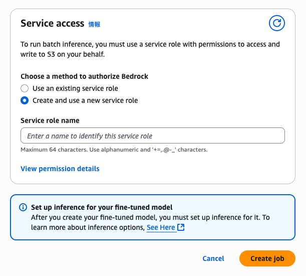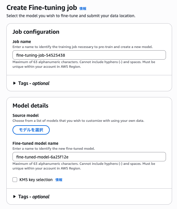 任意の「Job name」と「Fine-tuned model name」を入力します。(デフォルトあり)