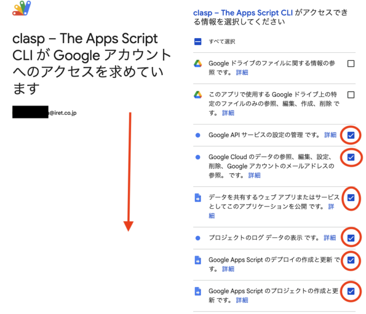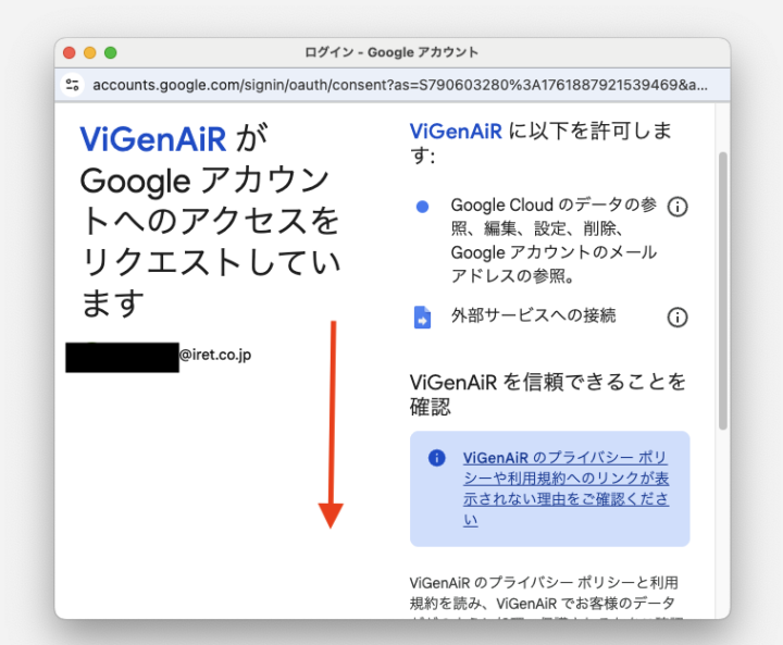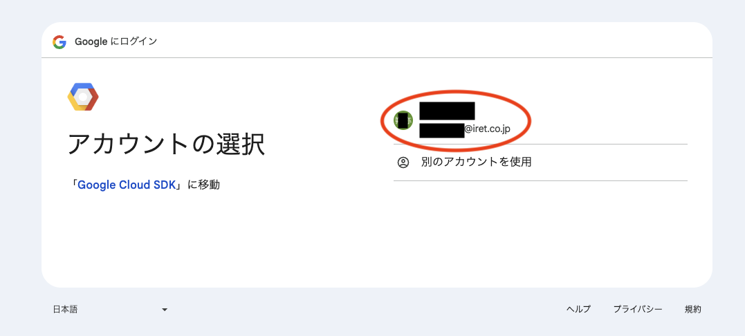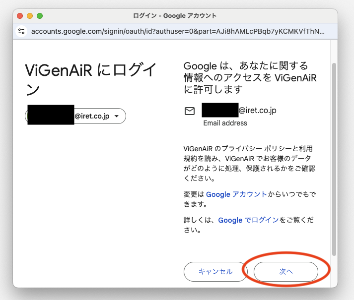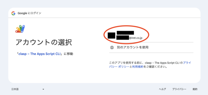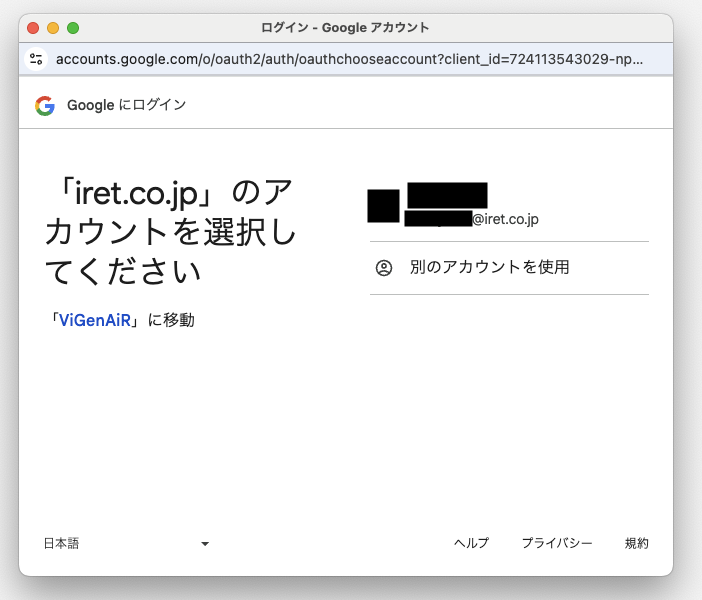 Googleの認証を求められるので、自分のアカウントを選択します。