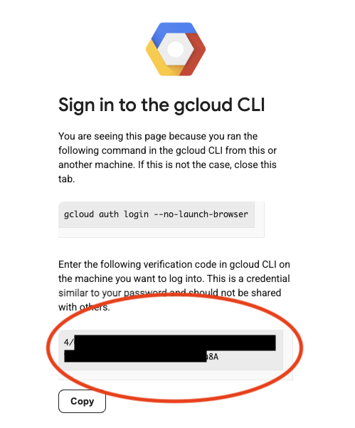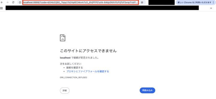 認証を承認していくと、以下の画面が出てくるので、赤丸で囲った部分の文字列をコピーします。