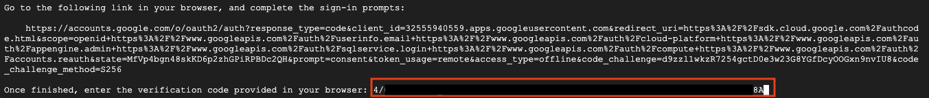 Cloud Shellのターミナル画面に戻って、コピーした文字列をペーストします。