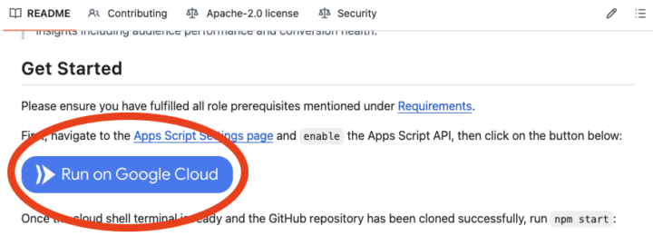 下にスクロールしていくと「Get Started」の部分に、「Run on Google Cloud」という項目があるため、これを押下します。