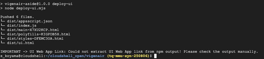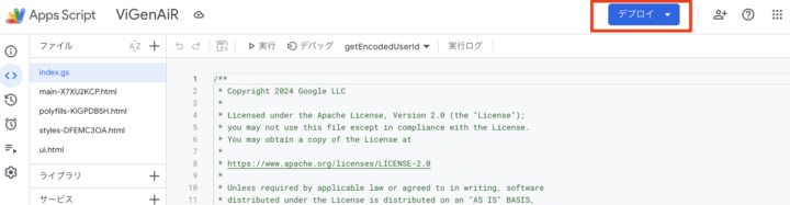 「ViGenAiR」を押下し、その先の画面にある「デプロイ」を押下します。