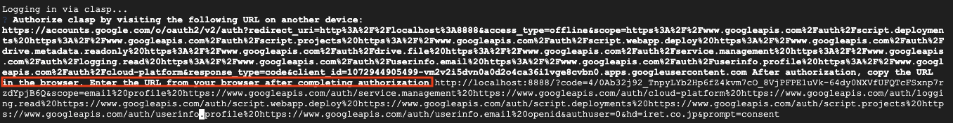 次はclaspの認証が求められるので、該当部分の文字列をコピーして、別タブにペーストします。