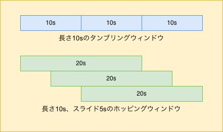 - スライディングウィンドウ:時間的に固定だが重なりがある。過去一定期間のデータを定期的に更新する場合に適する。