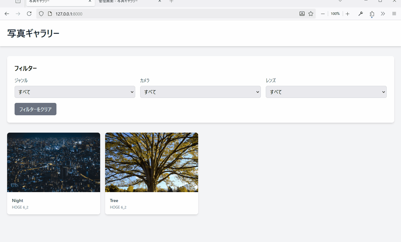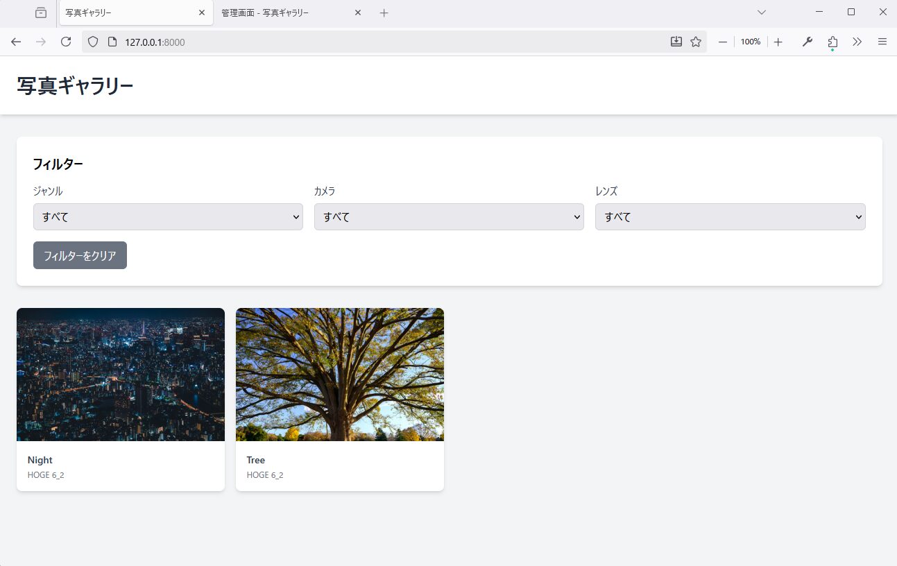 ローカルホストで起動できるらしいので、実際にアクセスしてみたいと思います!(画像には)既に写真が追加済みですが、意図通り動作していることが確認できます。