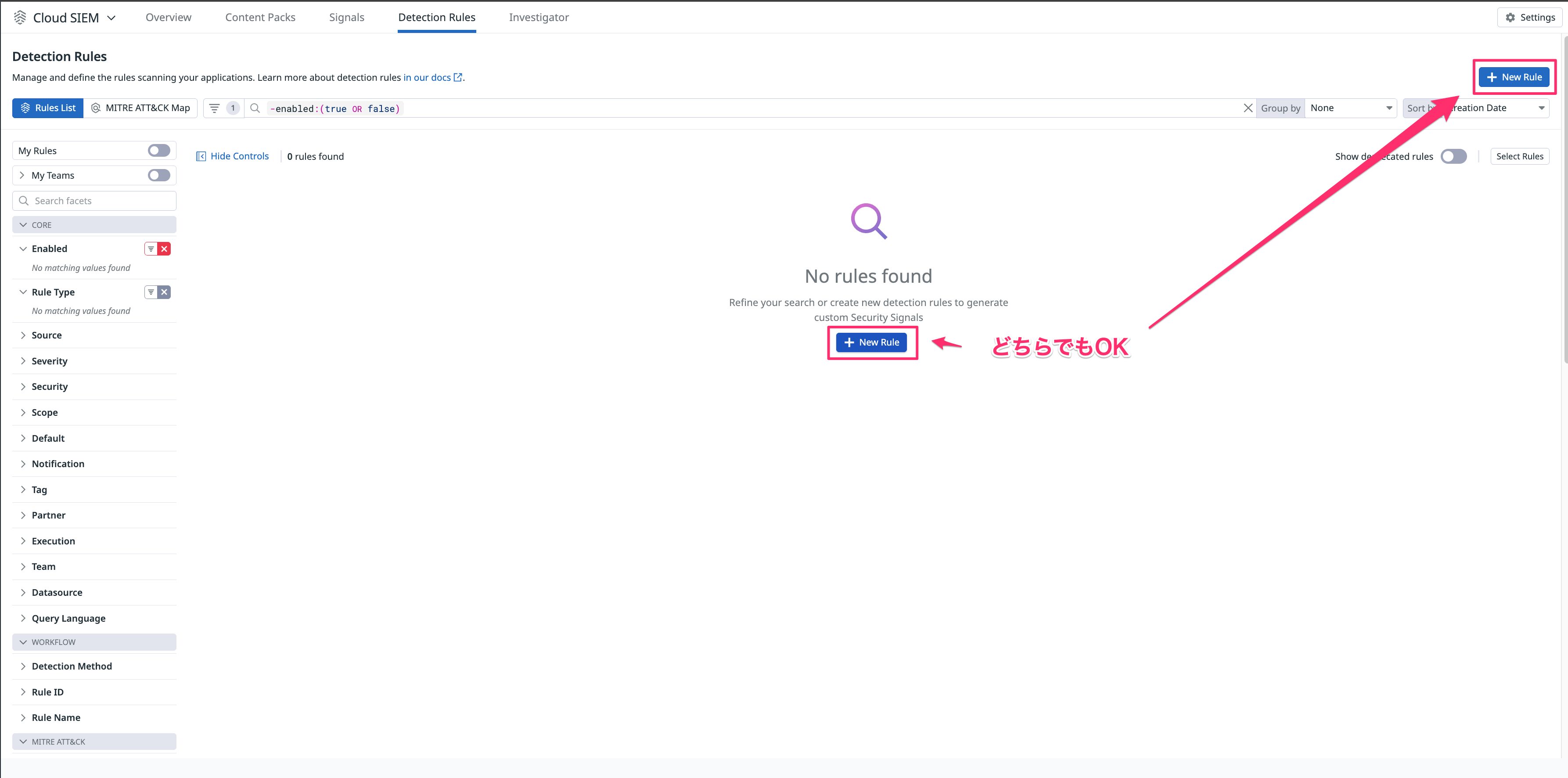 Cloud SIEM の Detection Rules から新規ルールを作成します。