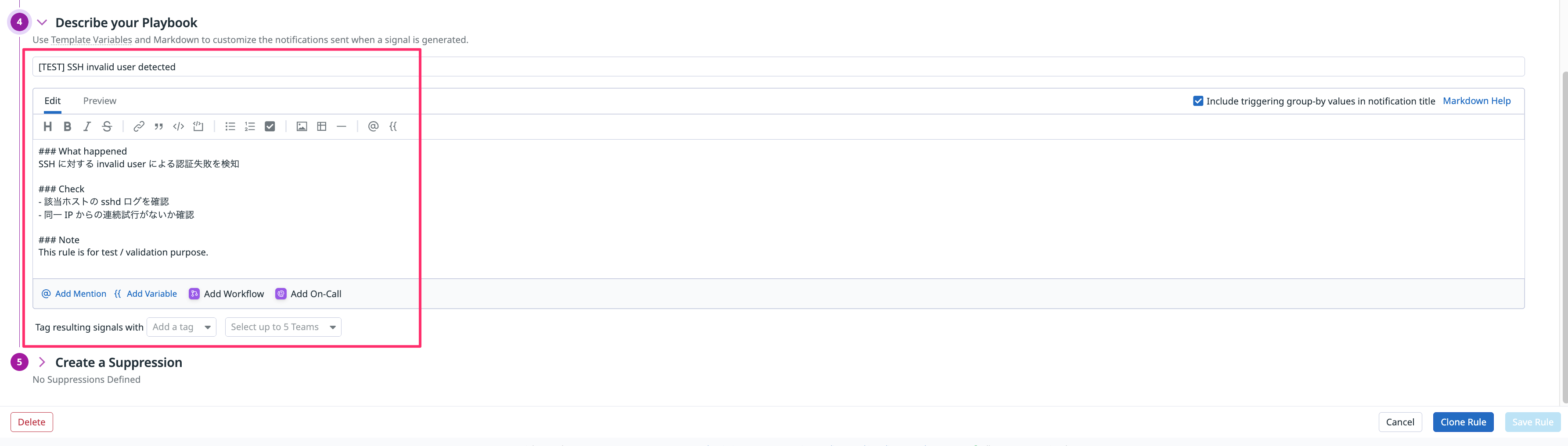 Detection Rule には Playbook を記載できます。