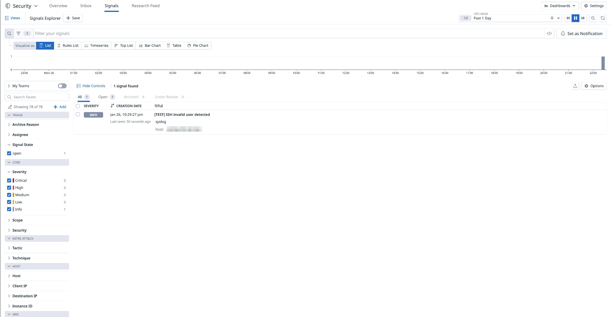 設定した Detection Rule により Signal が生成されました。