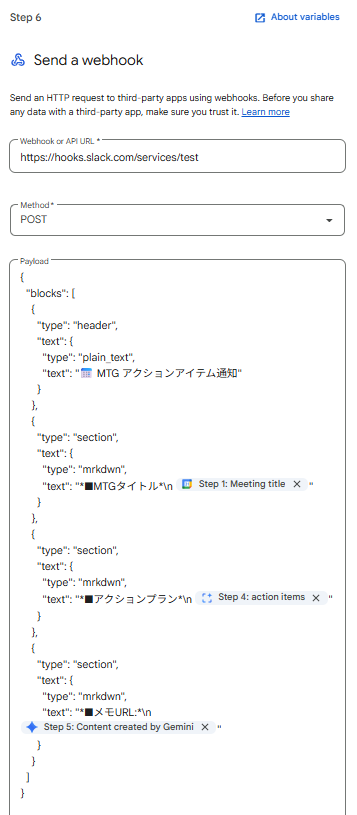 - Step 6: Send a webhook (整形した情報を Slack に送信する)