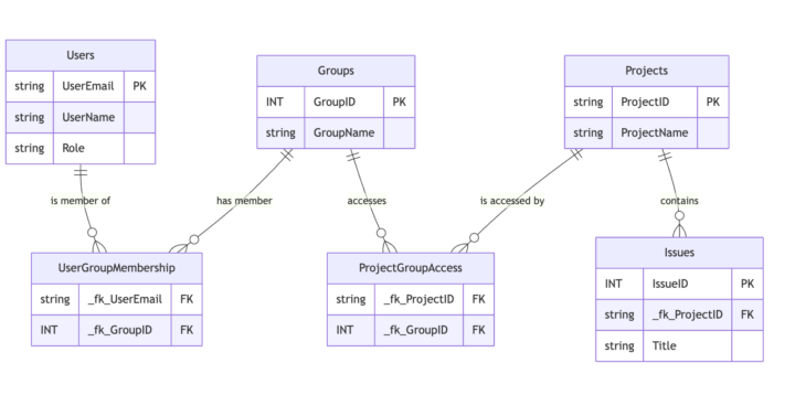Issuesテーブルの_fk_ProjectIDUserGroupMembershipテーブルの_fk_UserEmailと_fk_GroupIDProjectGroupAccessテーブルの_fk_ProjectIDと_fk_GroupID