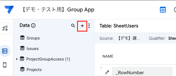 まずは、作成したテーブル(シート)をAppSheetの [Data] セクションから連携します。