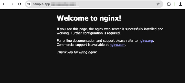 数分も経たないうちに、ALB のリスナールールが更新され、Route 53 に DNS レコードが追加され、アプリにアクセスできるようになりました。