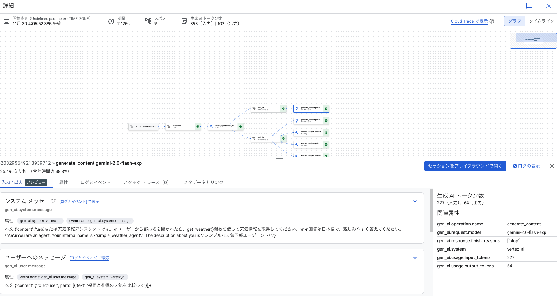しかし、この度、ついに Google Cloud Console から直接、エージェントの動作確認(プレイグラウンド機能)や、実行状況を詳細に追跡・分析できる テレメトリー機能 が統合されました!