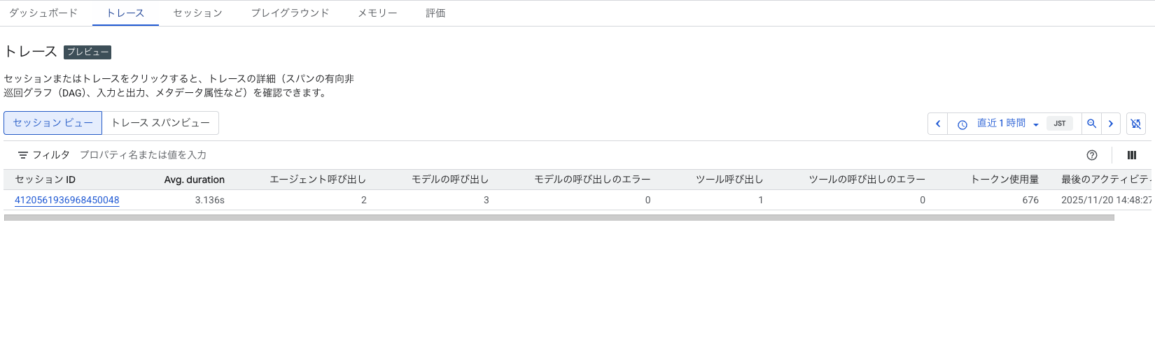 プレイグラウンドだけでなく、従来のスクリプトからエージェントを呼び出した場合も、同様にセッションとテレメトリーが記録されます。
