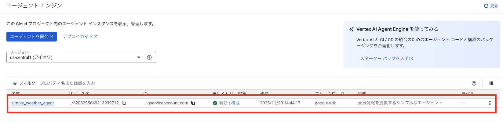 # このコードを実行すると、エージェントがGoogle Cloudにデプロイされます