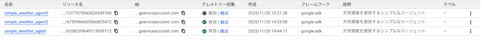 ※simple_weather_agent3についてはテレメトリー収集が無効になっています。