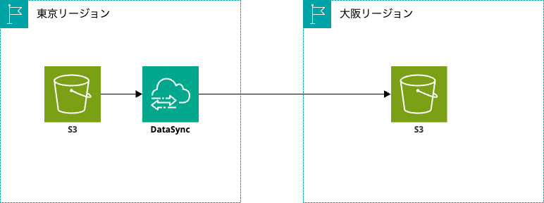 S3 のデータを別リージョンの S3 バケットへ転送する方法の 1 つとして、AWS DataSync を利用できます。