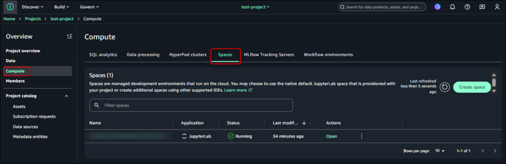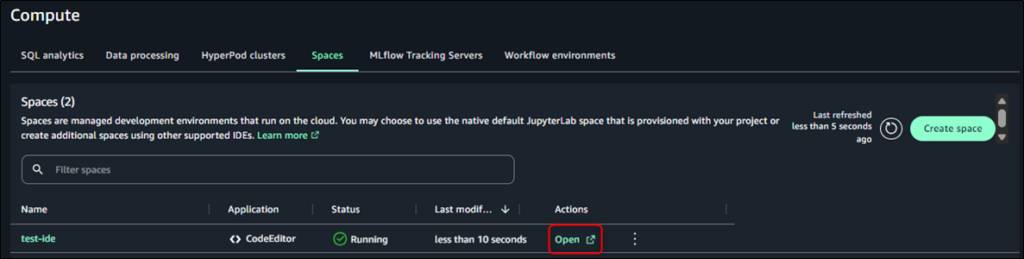 - プロジェクトから「Compute」>「Spaces」タブを選択