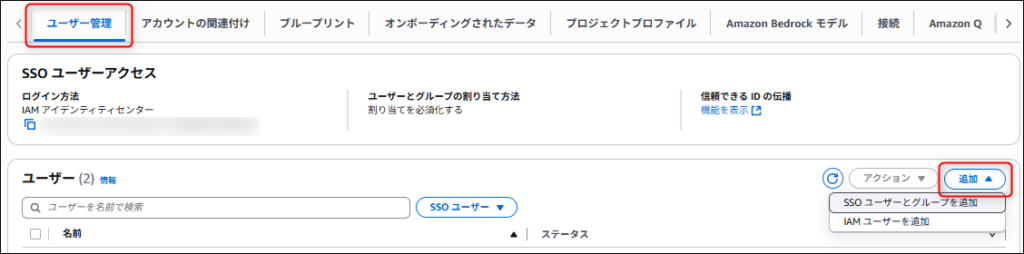 - 今回の例ではSSOユーザによるアクセスのため、IAM Identity Centerに存在するSSOユーザを指定しています