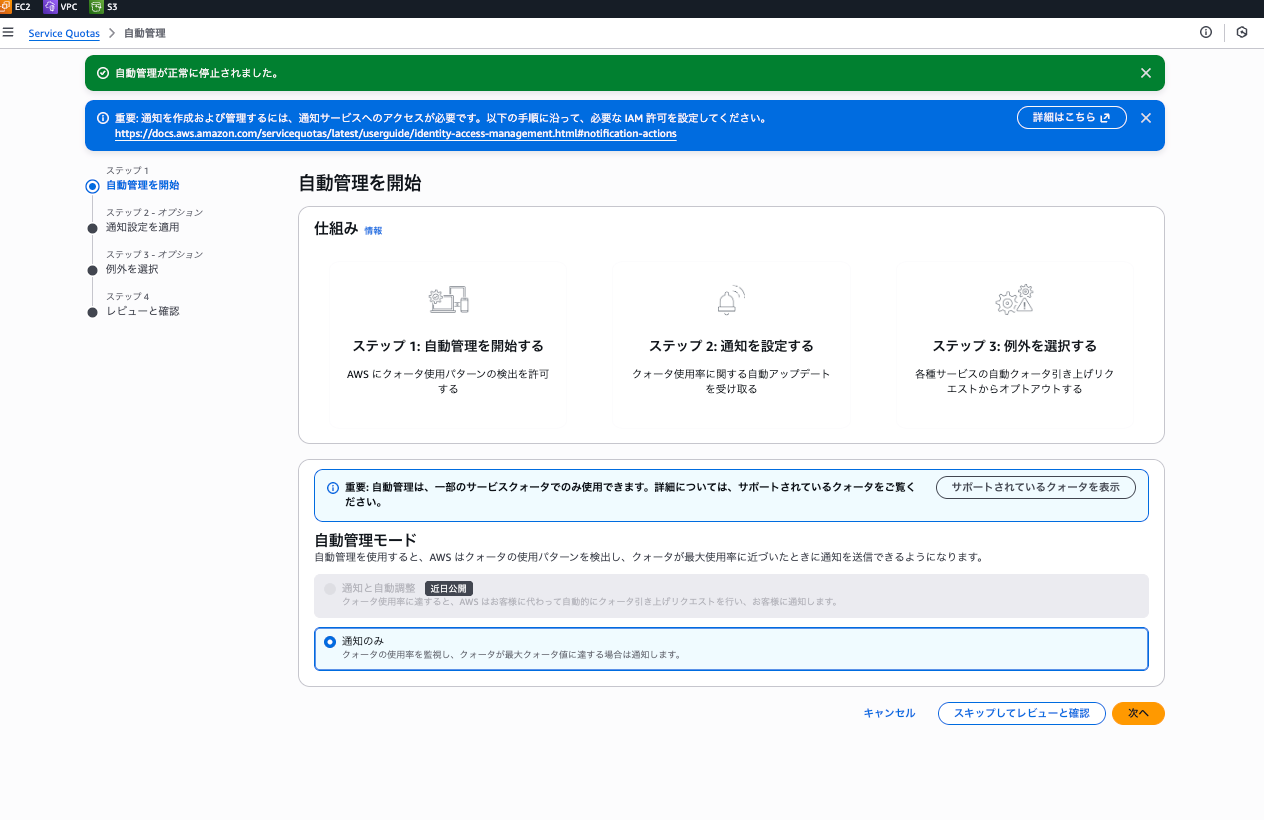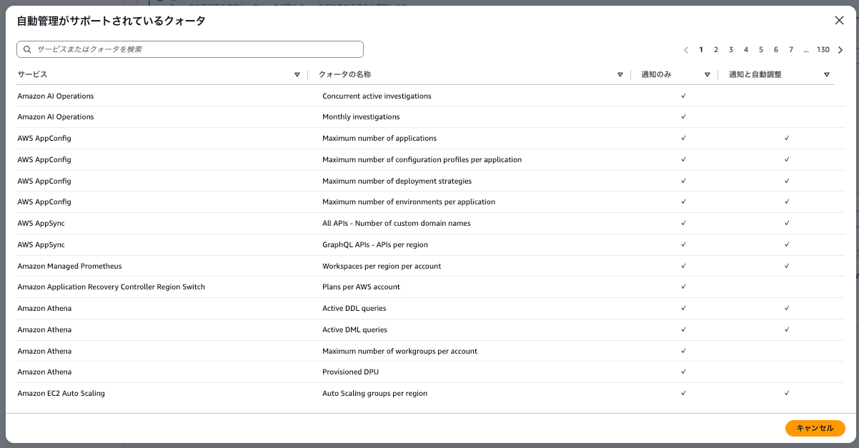 すべての AWS サービスのすべてのクォータについて有効化できるわけではないということは注意が必要ですね。