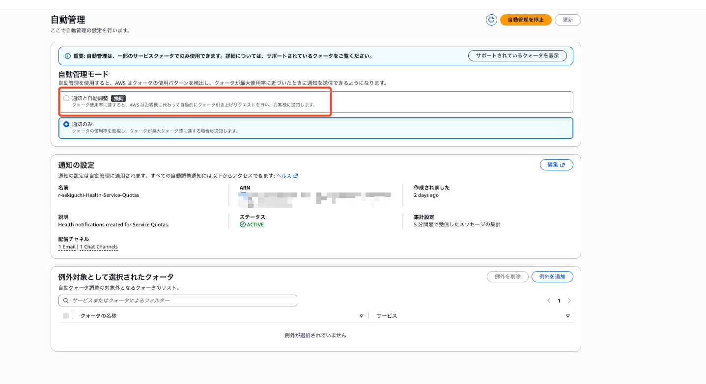 検証② : 「通知と自動調整」モードでクォータ上限に達した時に通知が来るのか & 自動的にクォータが引き上げられるのか