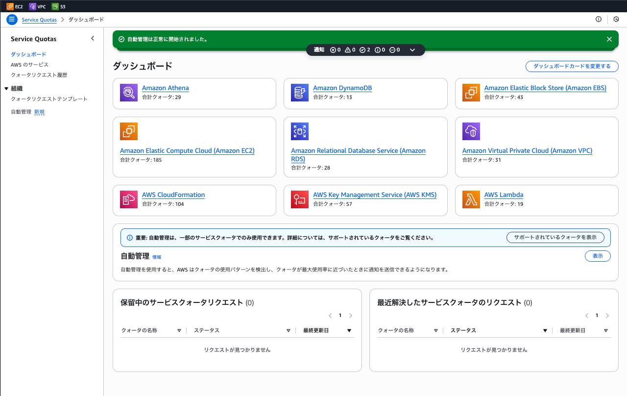 2025年10月7日、AWS Service Quotas について自動クォータ管理機能の提供が開始されました。
