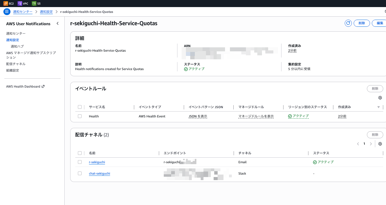 AWS User Notifications の方でも、通知設定が追加されていることが確認できました。