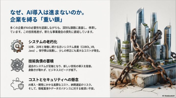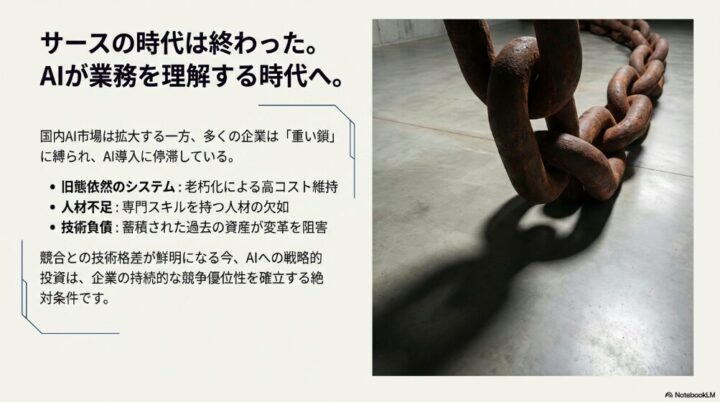「gaipack」を通じて、お客様が抱えるシステムの老朽化や人材不足といった「重い鎖」を断ち切り、最大60%のコスト削減、開発スピード2倍以上という圧倒的な成果を実現します。
