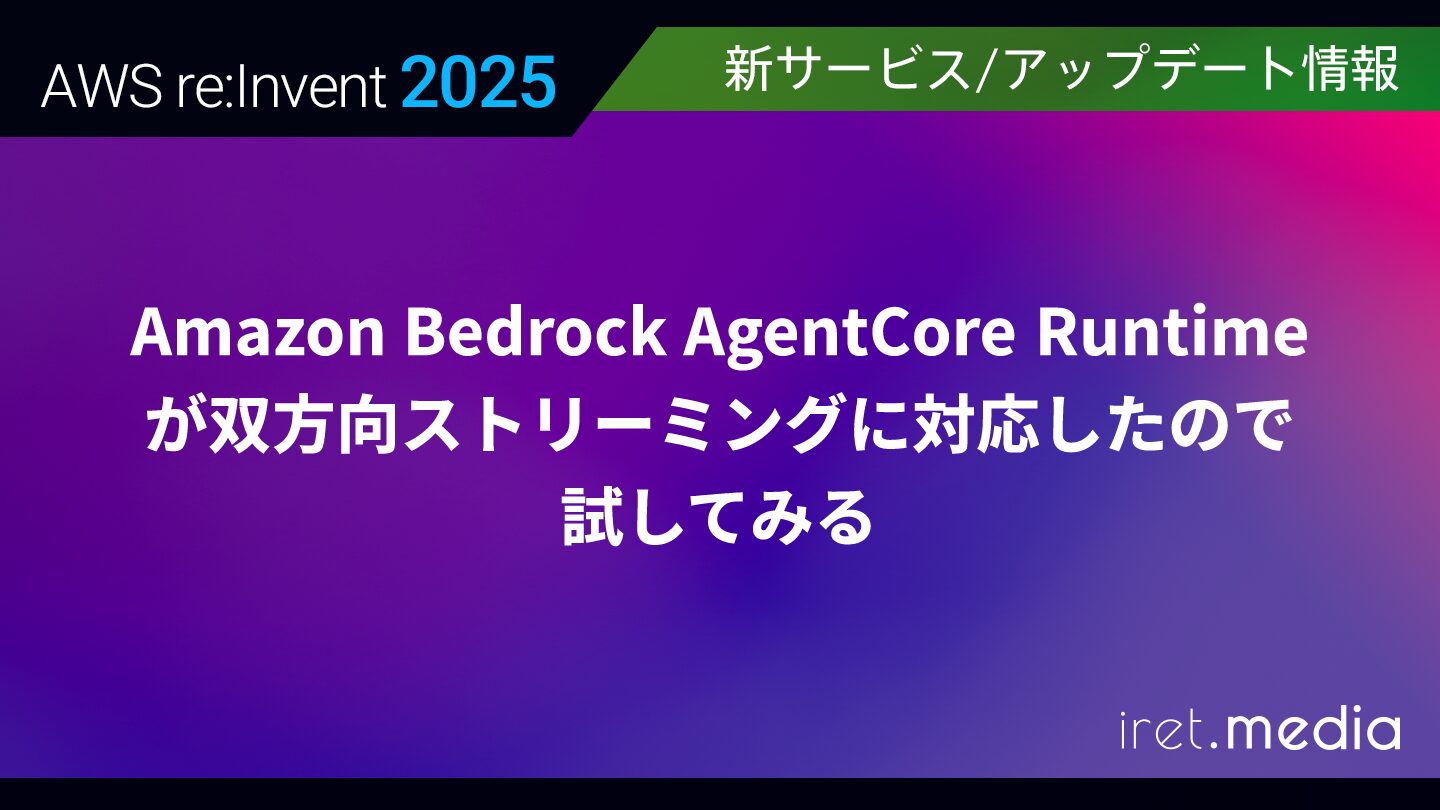 今回は、Amazon Bedrock AgentCore RuntimeのWebSocketを使った双方向ストリーミングについて、サンプルの音声アプリケーションを動かしてみた記事を書いてみました。