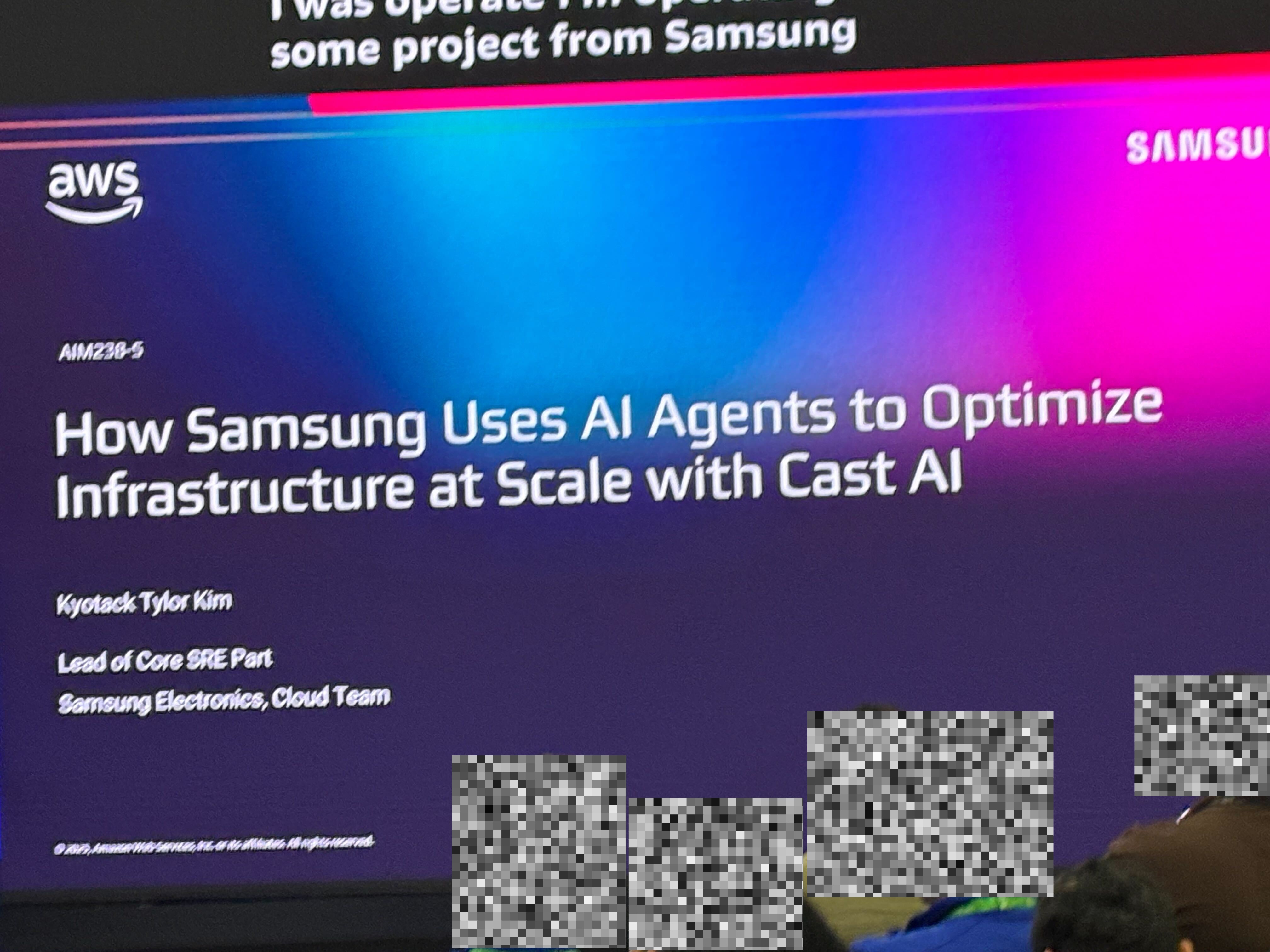 Samsung Electronics の Kyotack Tylor Kim 氏が、1000以上のEKSクラスターという大規模なインフラを、Cast AIと独自のAgentic AIでどのように自動化・最適化し、30%以上のコスト削減を実現したかが紹介されていました。本記事では同社が直面した課題と、それをどのように乗り越えてきたのか、について整理しています。