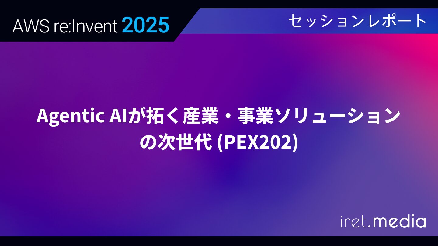 本記事はAWS re:Invent 2025の1日目に実施された、「Agentic AI’s new generation of Industry and Line of Business solutions (PEX202)」のセッションレポートです。