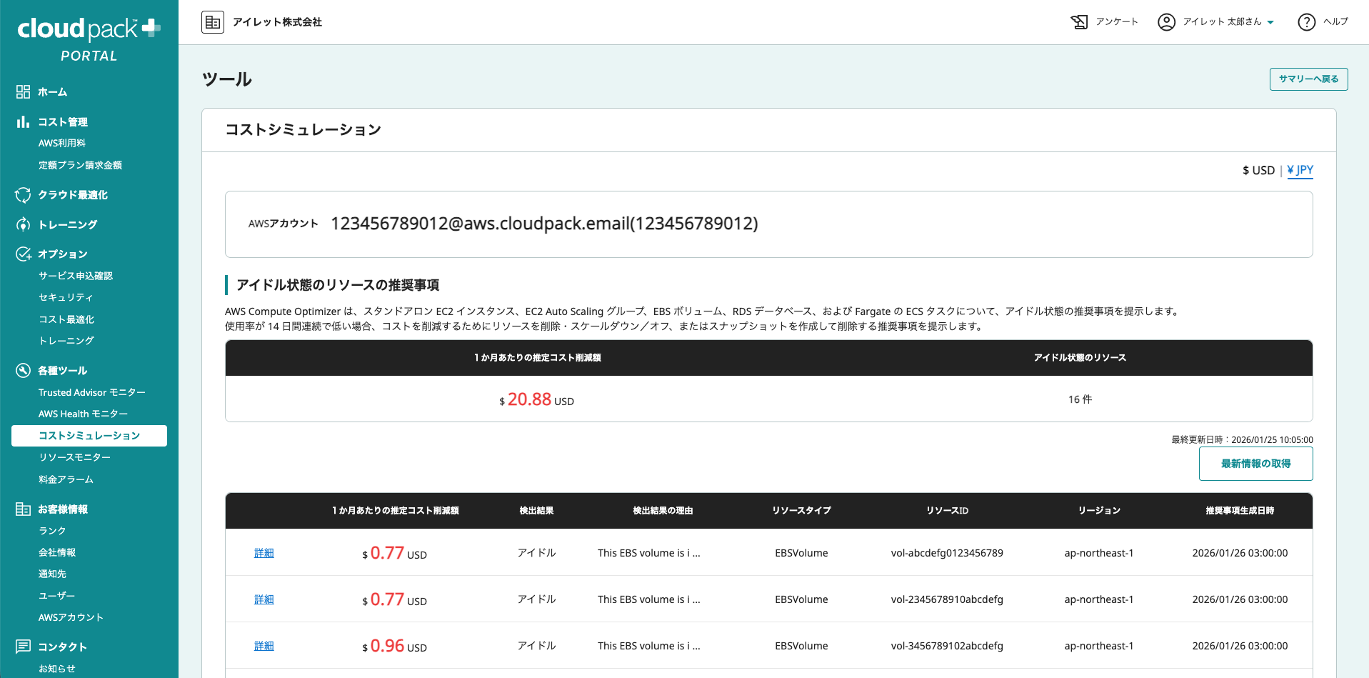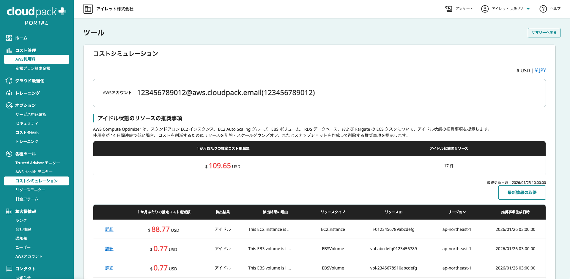 ※本ツールは、AWSのベストプラクティスに基づいたコスト削減の「提案」を行うものです。