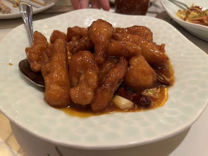 ということでひとつだけピックアップ。なんちゃらオレンジお肉です。これがもう美味しすぎて好きなものランキングに普通に割り込みしてきました。人数を考えずにしれっといっぱい食べました。
