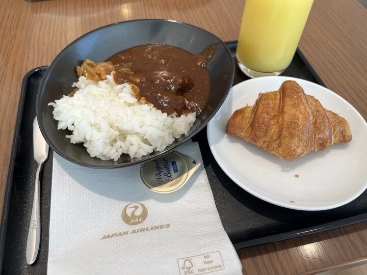 朝ごはん:空港ラウンジのカレーとクロワッサン