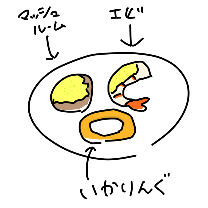 最初に出てきた食べ物を撮影することを忘れる癖があります。iPadを持ってきていたので描いてみました。我ながら絵心があるな。