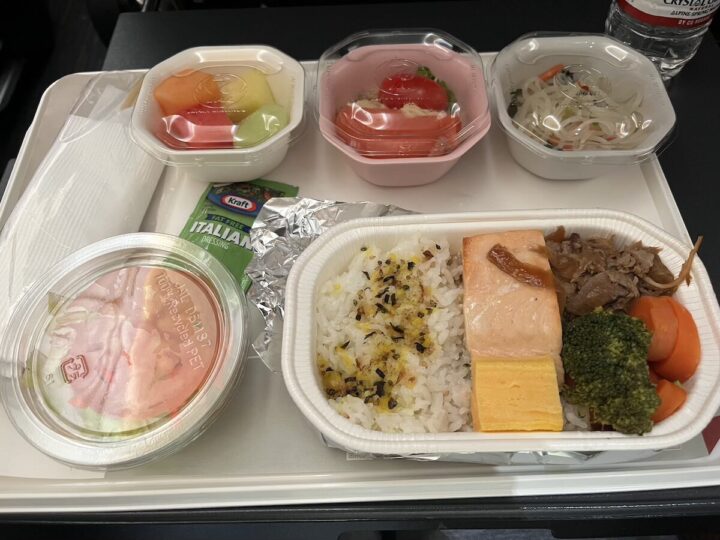 この辺はもう何ご飯を食べているのかよく分かりませんでしたが、機内は基本暗くてたまに明るくなってご飯をもらってまた暗くなってまた食べて…なんとなく怖かったです。