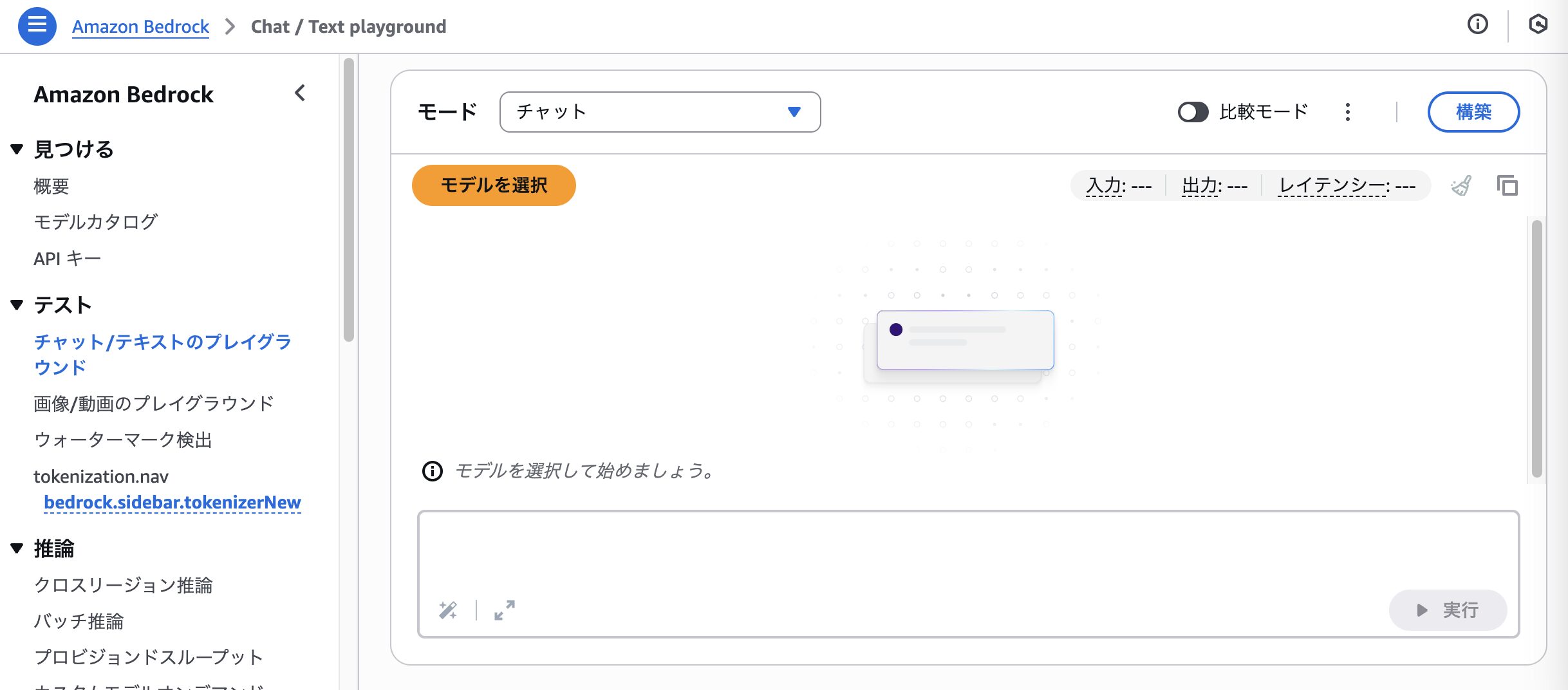 まずはバージニア北部リージョンのAmazon Bedrockのコンソール画面でプレイグランドを開きます。