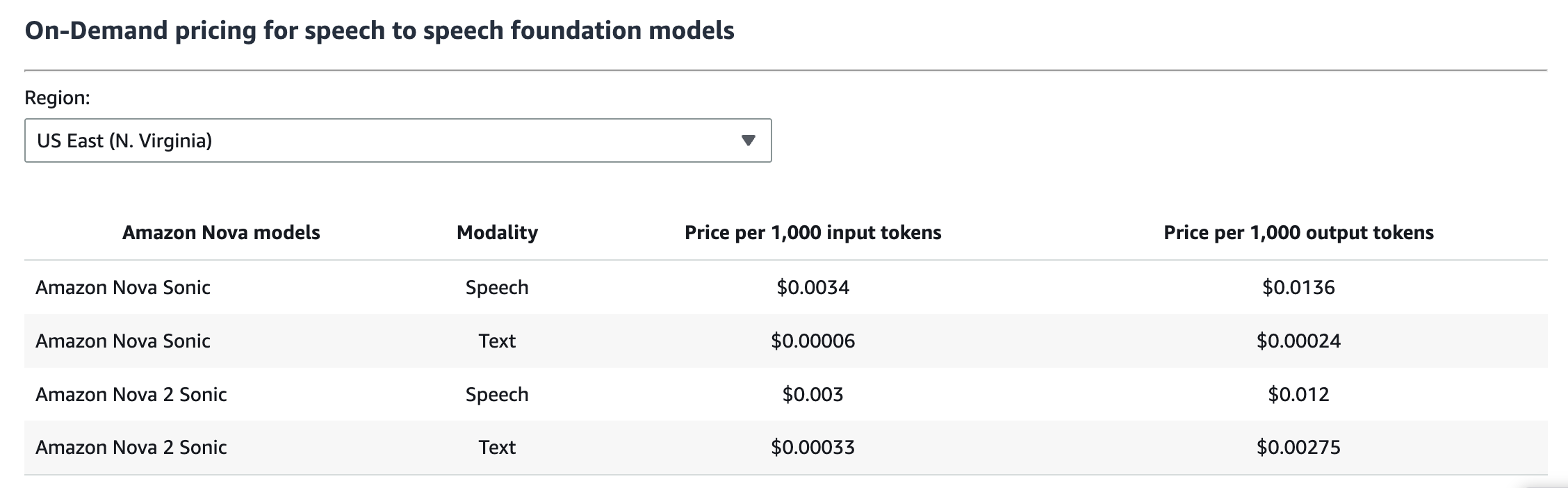 Amazon Nova 2 Sonicに関してはテキストモダリティではこちらも入力で約5倍・出力で約11倍ほどの差となっていてAmazon Nova 2 Liteと同じように高価になっているようです。