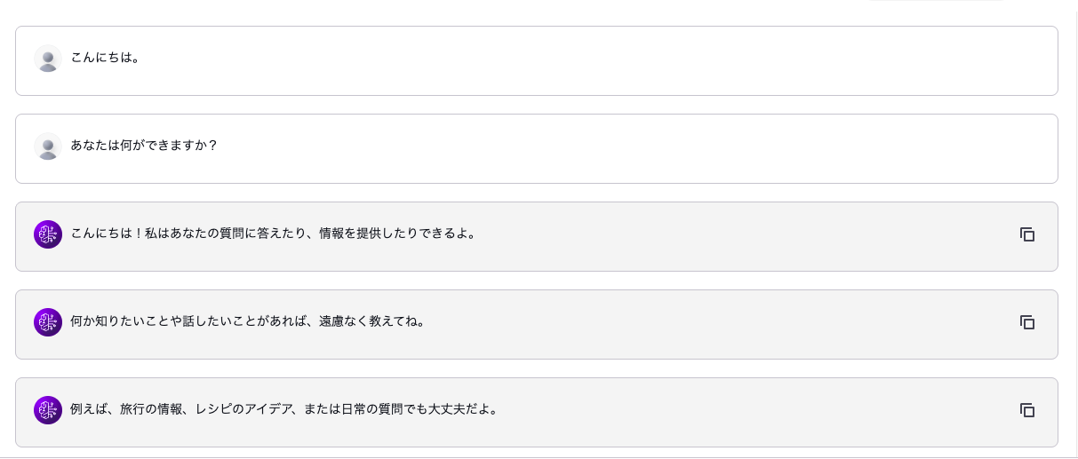 よくサンプルでみる質問をしてみましたが、少し多弁な印象🤔