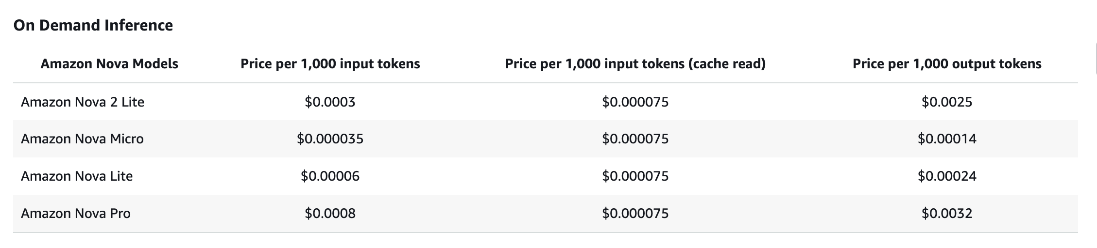 Nova Liteと比べると入力トークンは5倍・出力トークンは約10倍の料金ですが、Nova Proと比べるとまだまだお安いのでこれで検証結果次第では置き換えも検討できますね!