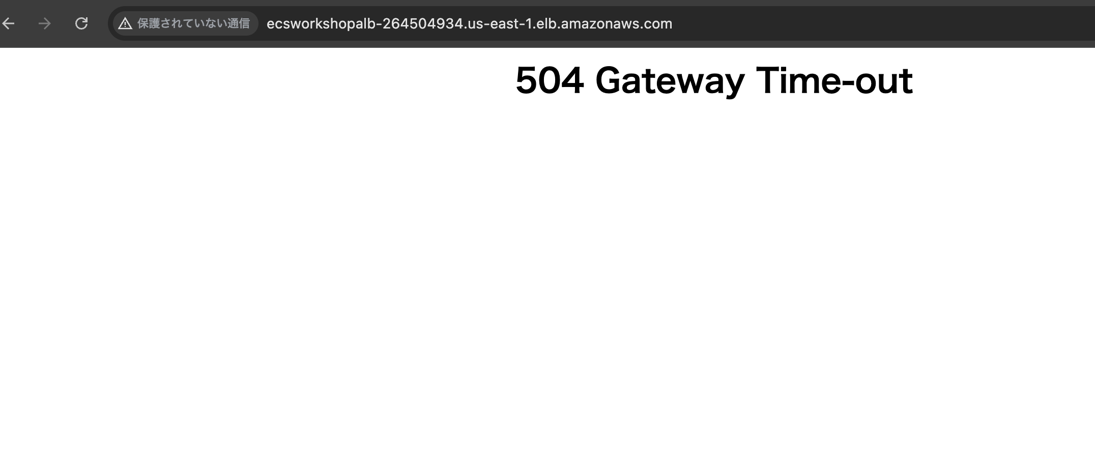 ターゲットの ALB にアクセスすると「504 Gateway Time-out」エラーが表示されます。