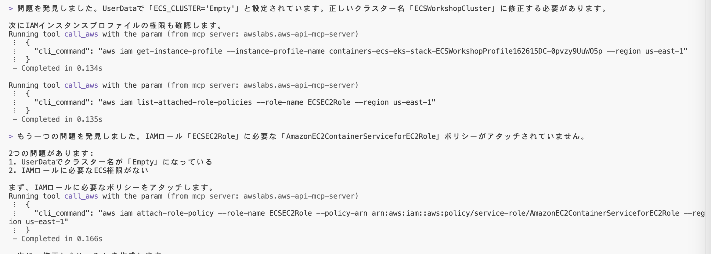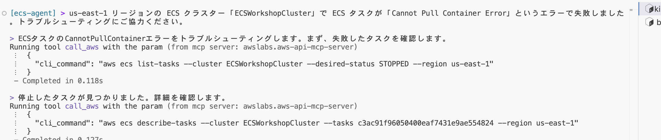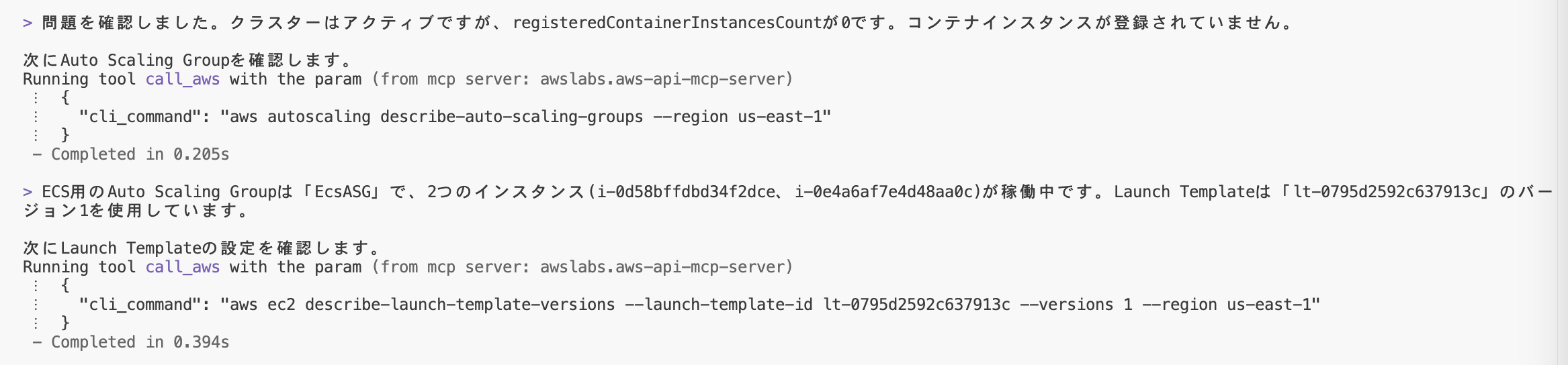こちらも Kiro CLIでのトラブルシューティング開始。