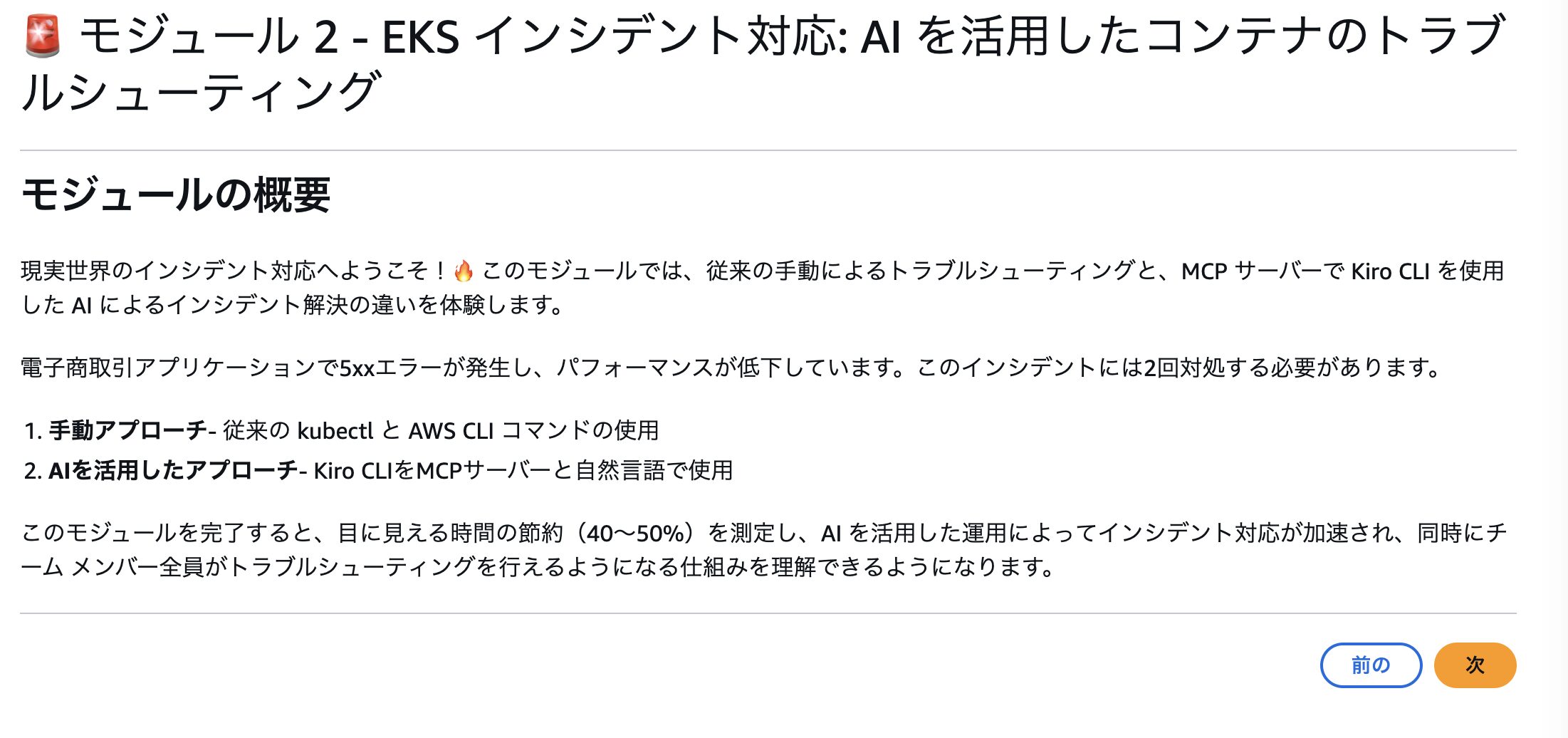 Kiro CLI で Kubernetes上のecサイトのインシデント対応をする。