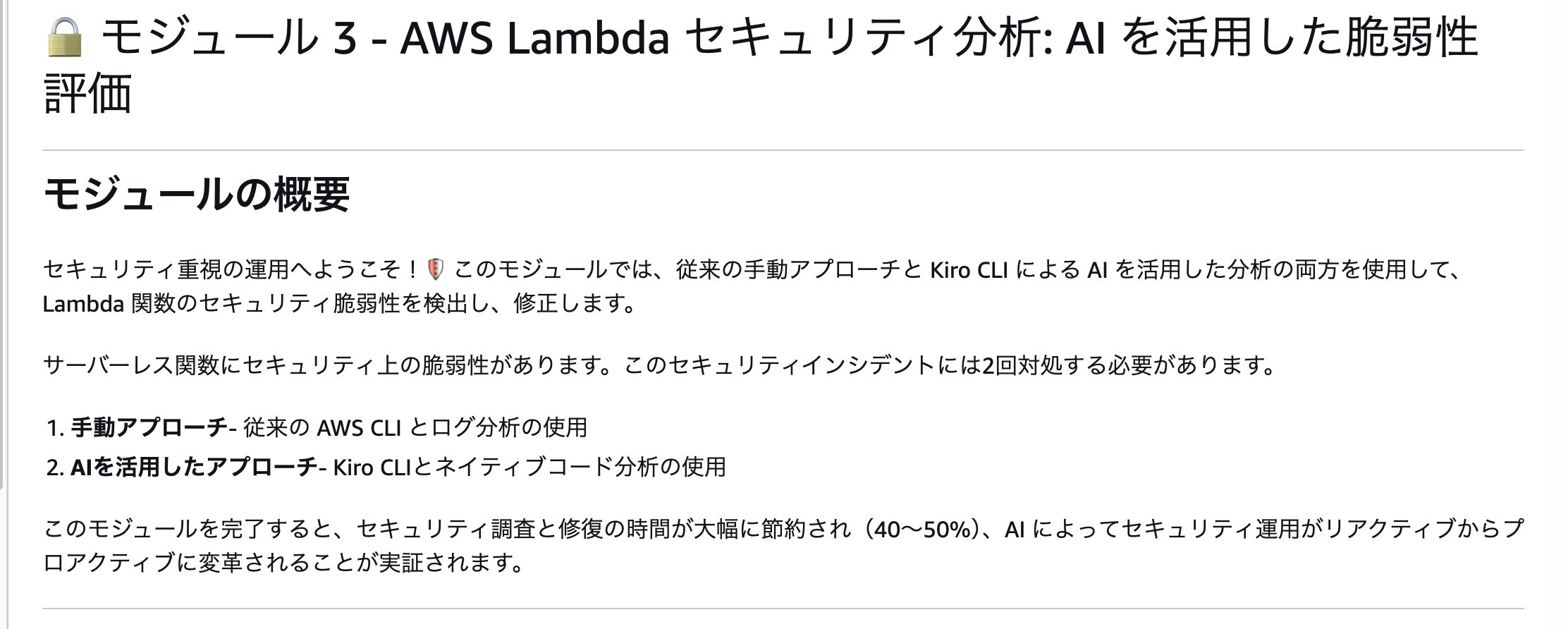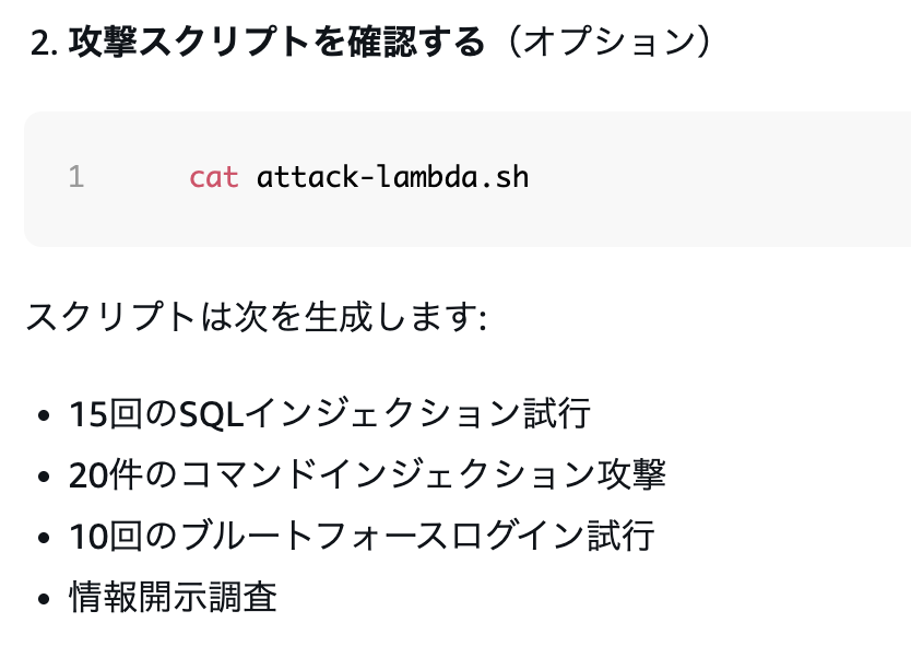 Lambda 関数に攻撃を仕掛けて、Kiro CLI による調査を実施する。