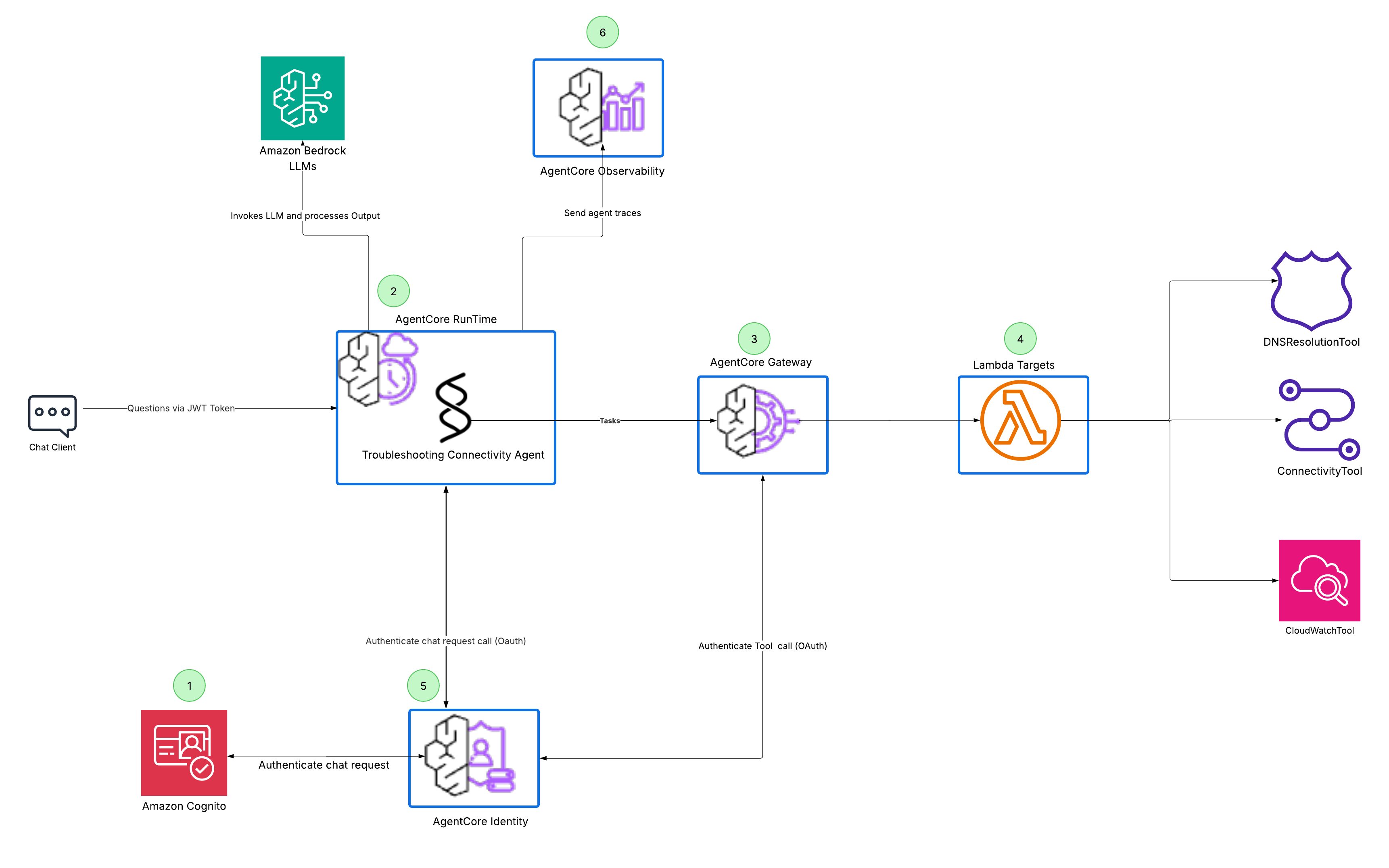 Amazon Bedrock AgentCore を活用し、接続やパフォーマンスのトラブルシューティングシナリオを通じて、運用を自動化するハンズオンのレポートです!
