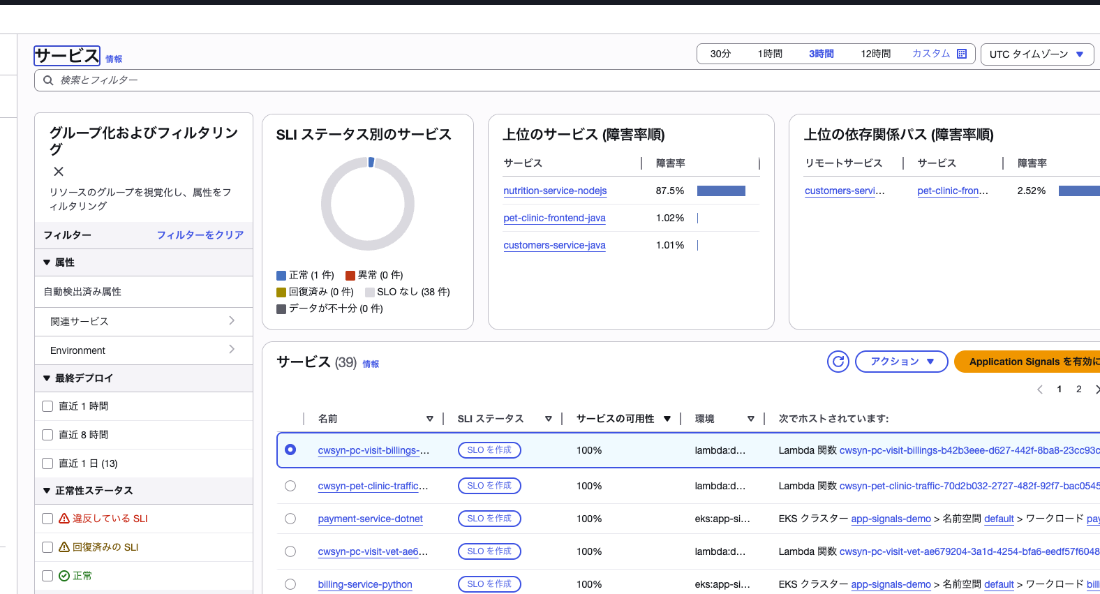 ナビゲーションペインで、アプリケーションシグナル→サービスを選択します。