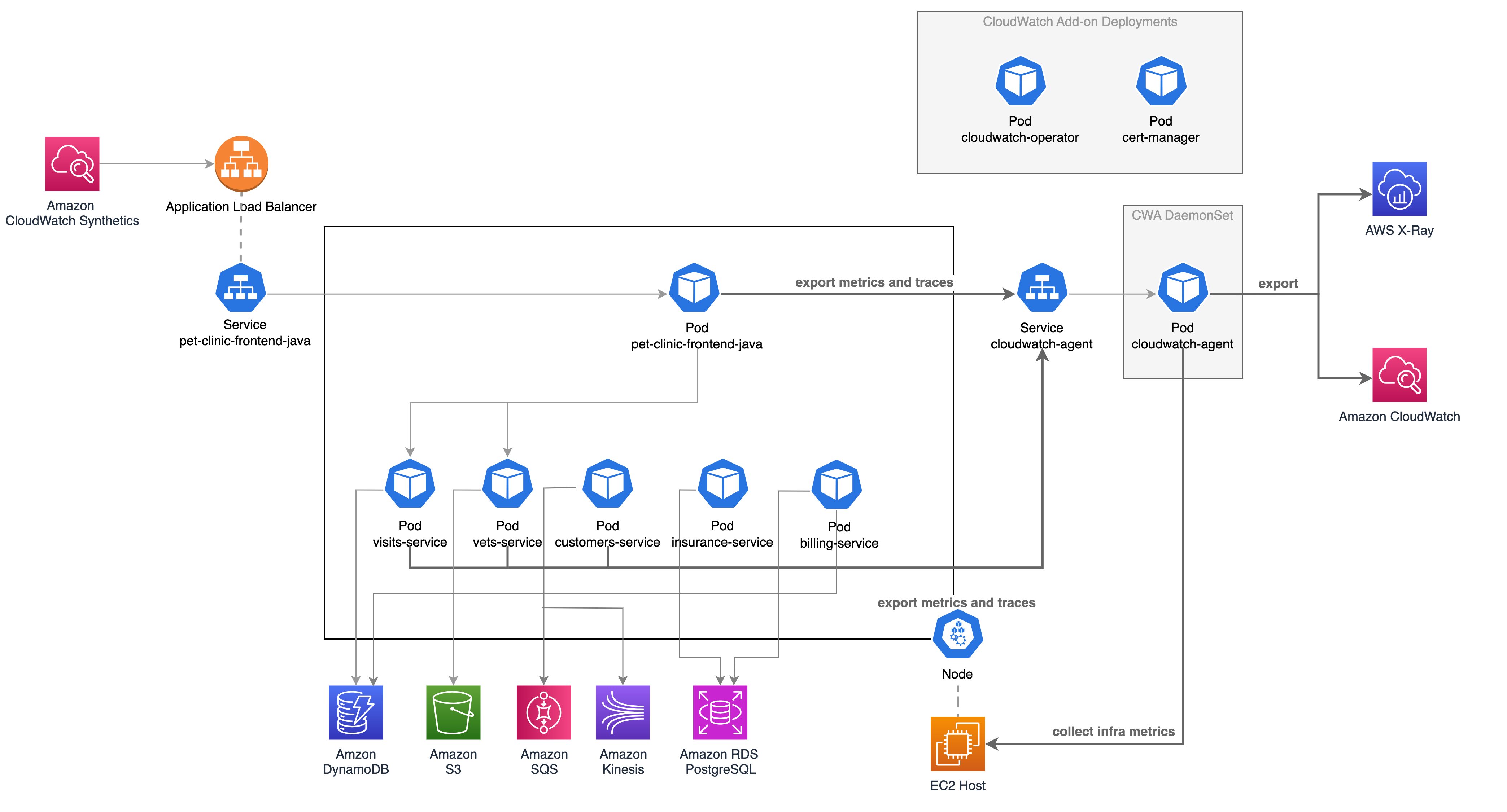 ここからハンズオンで、CloudWatch Investigations とアプリケーションシグナルを使用して、Amazon EKS で実行されている動物病院アプリケーションの問題を調査します。