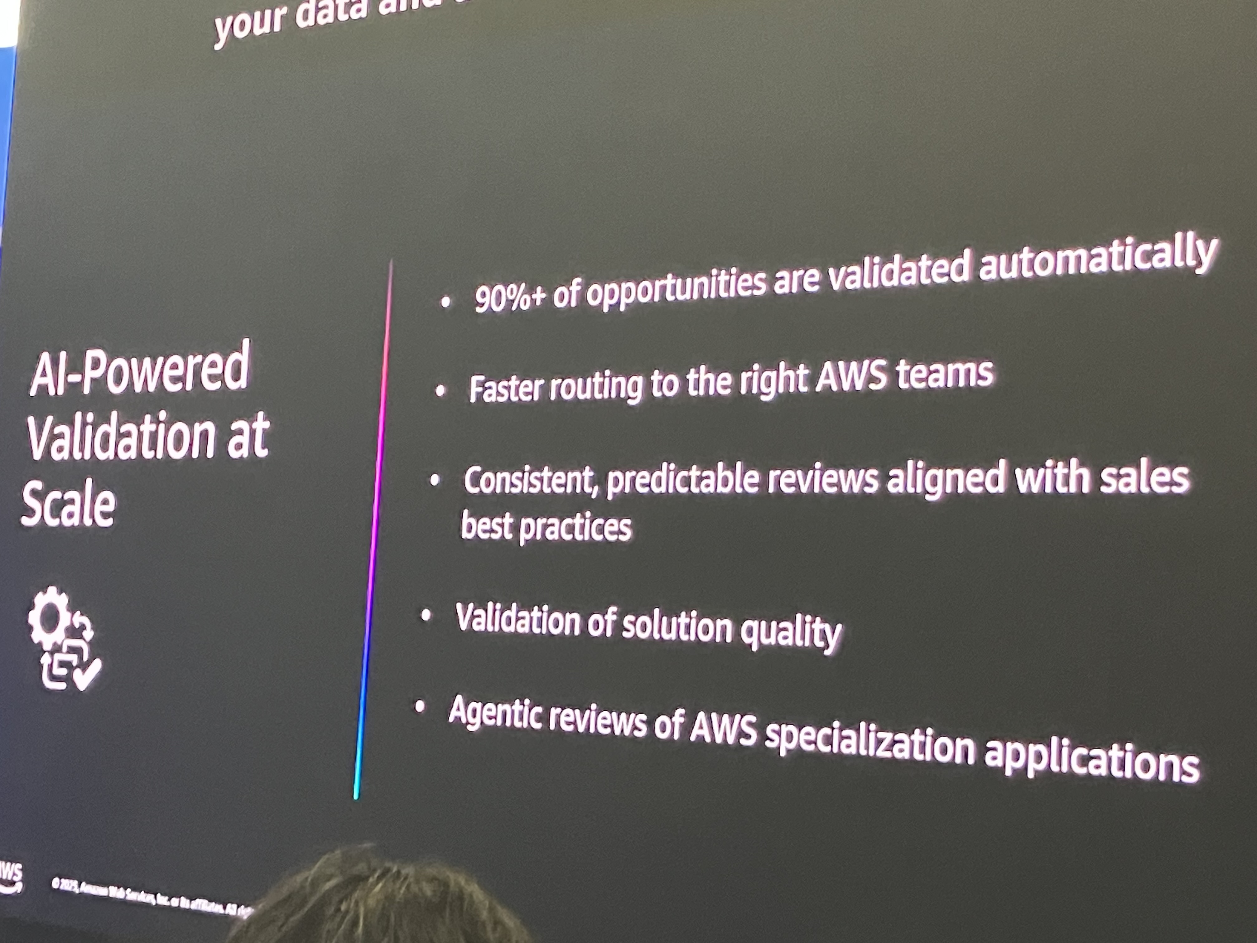 AWSは、商談の検証プロセスにもAIを導入しています。パートナーが商談を提出すると、AIが自動的に商談の適格性を検証し、AWS営業チームに引き渡す前にチェックします。
